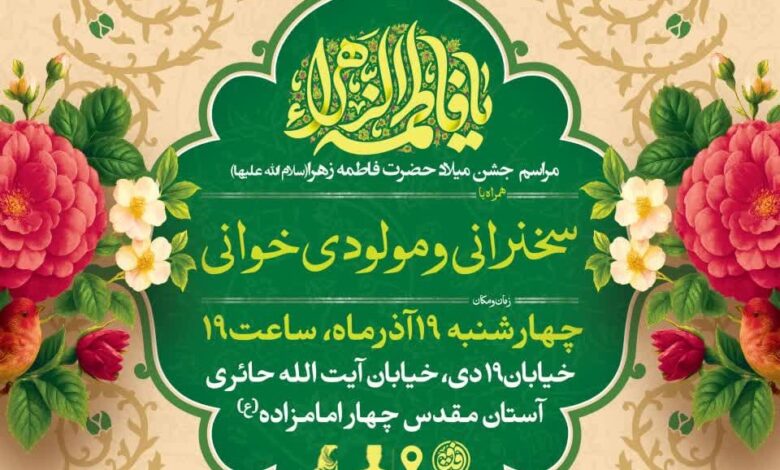 بر این اساس مراسم مذکور شامل سخنرانی حجتالاسلام جانعلیزاده، مولودیخوانی حاج محمد علیزاده و برگزاری مسابقه مادر مهربانی با محتوای آشنایی با سیره حضرت زهرا(س) است.