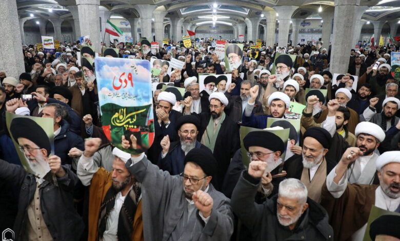 اجتماع بزرگ حوزویان و اقشار مردم انقلابی شهر مقدس قم به مناسبت سالروز حماسه ۹ دی در مدرسه علمیه فیضیه برگزارشد.