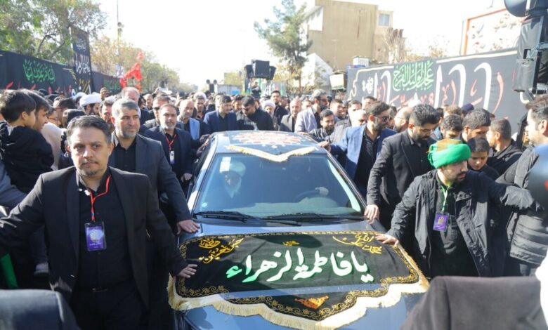 به گزارش ایمان ، این آیین سنتی صبح روزدوشنبه و همزمان با سالروز شهادت دخت گرامی پیامبر اسلام(ص) آغاز شد و آیتالله وحید خراسانی در مسیر حرکت دسته عزاداری، عزاداران و سوگواران را تا آستان مقدس کریمه اهلبیت(س) همراهی و مشایعت کرد.